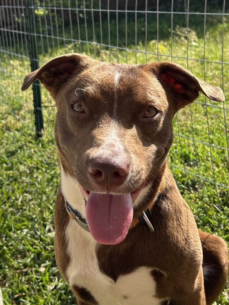Coco – 3 yr old pittie mix that does not like to pose for pictures. She is sweet and wants to give lots of hugs. Although being attacked by another dog, she is does great with other dogs. She has lots of energy and would enjoy walks and lots of play time.